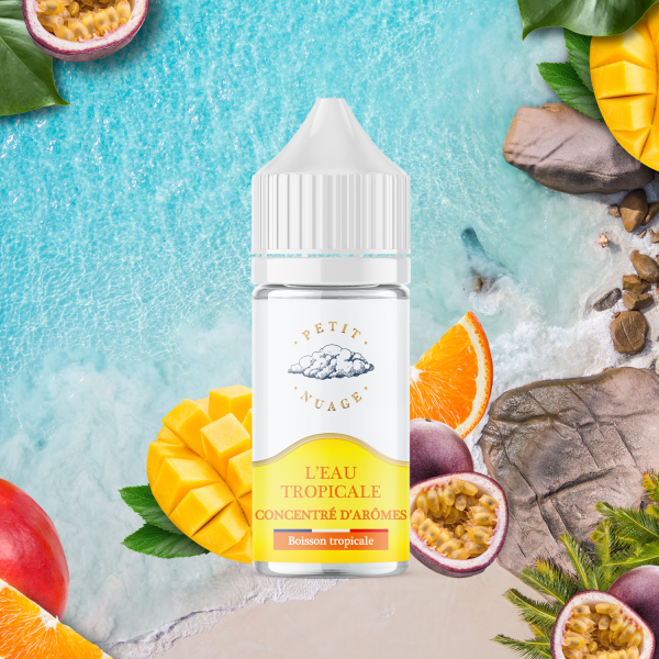 Une eau orangée, aromatisée aux saveurs tropicales et très rafraîchissante...