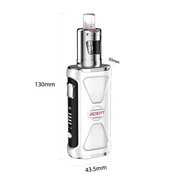 Le kit Adept de Innokin se compose d'une box dotée d'une batterie intégrée de 3000mAh et du clearomiseur Zenith d'une capacité de 4ml.