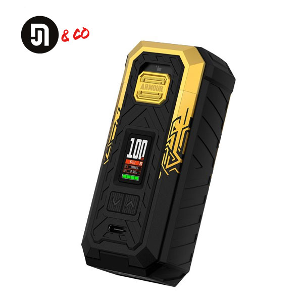 La box Armour S de Vaporesso : jusqu'à 100W, accu 18650/21700. Ergonomique, robuste, écran TFT 0.96". Chipset Axon pour contrôle température, modes eco/pulse.