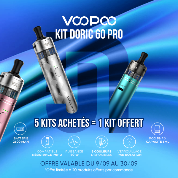 Le kit Doric 60 Pro de Voopoo intègre une batterie de 2500mAh et fonctionne avec un pod PNP X MTL d'une capacité de 5ml.