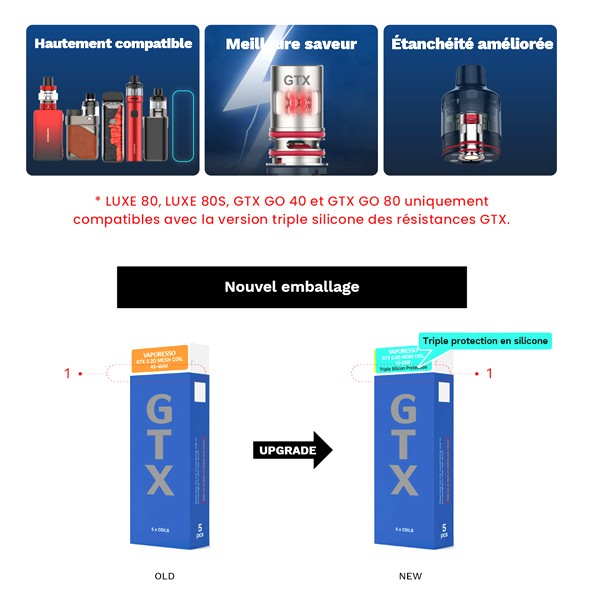 Ces rsistances GTX permettent de profiter pleinement ! Avec une dure de vie importante et une grande ractivit, ces rsistances GTX rpondront toutes les sollicitations des vapoteurs. Ces derniers apprcieront galement l'excellente restitution des saveurs de ces rsistances GTX Vaporesso !